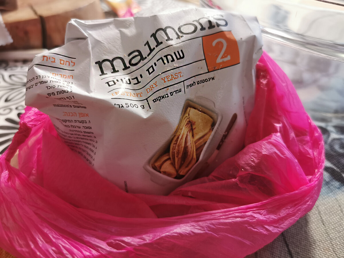 поэтому беру 1.5 чайной ложки сухих дрожжей и высыпаю в стеклянную миску.