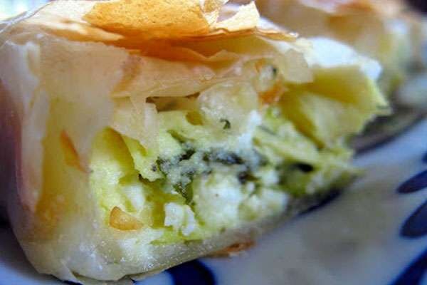 Аналогичным образом делается такой пирог из лаваша с брынзой и творогом.
