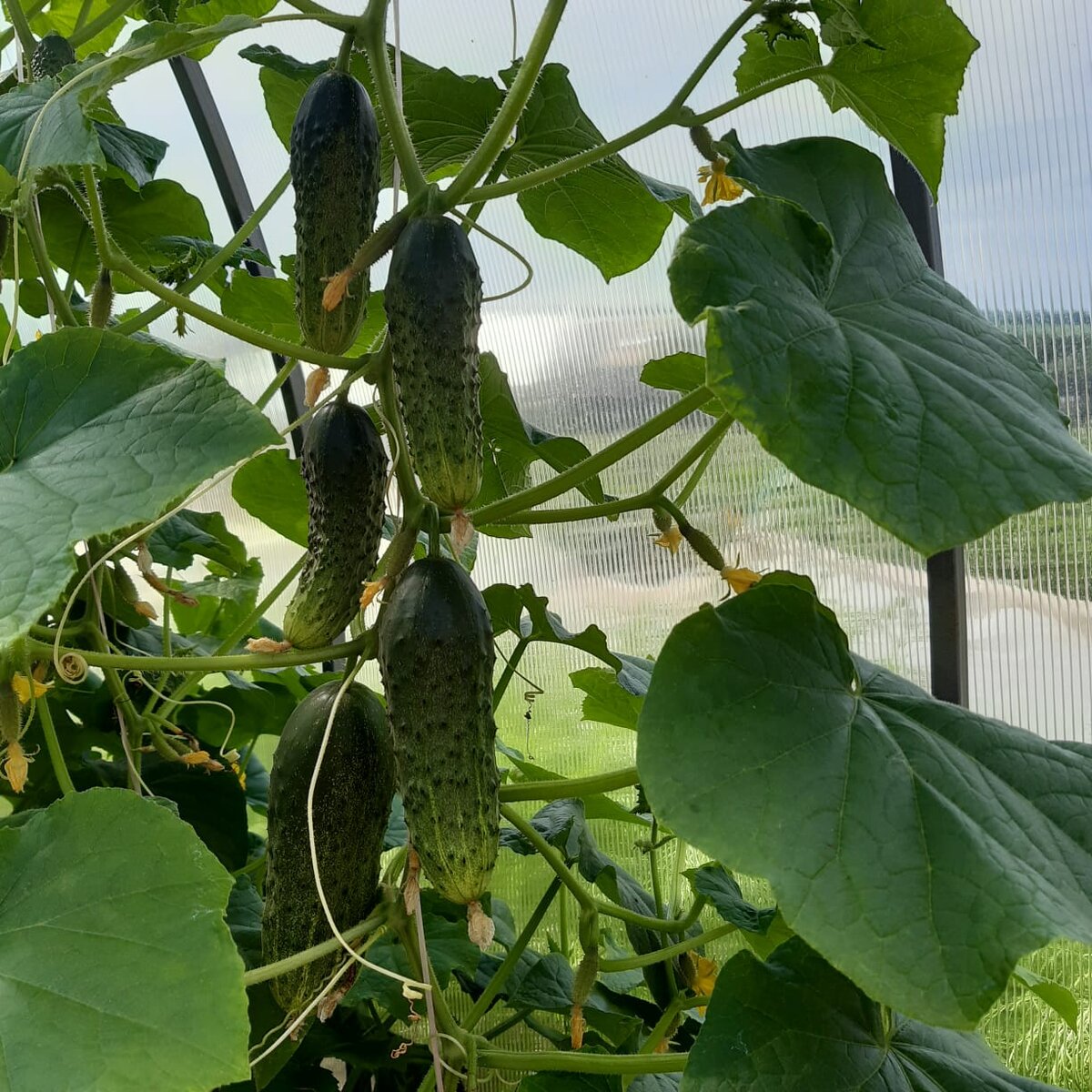 Хорошая поликарбонатная теплица, но урожая с нее мы собираем мало... Так как постоянно мы не живем, ездим только по выходным, то если двери откроешь, то в мае - июне, если заморозки, то все замерзнет. Если закроешь, то за неделю все гибнет от жары, даже если и не закроешь одну дверь. Или пыльца у томатов становится стерильной и они не опыляются. Если идет дождь, то он в теплицу не попадает. Погоду не предугадать. Бывает уедешь жара, приезжаешь - колотун. В общем как- то так.
