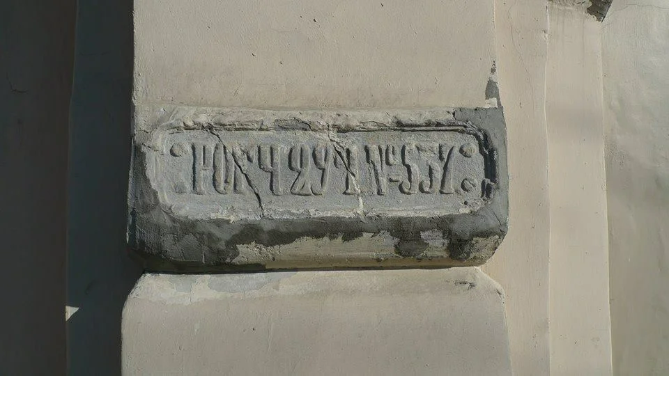 Одна из последний московских исторических навигационных табличек - домовой указатель, сделанный из камня.