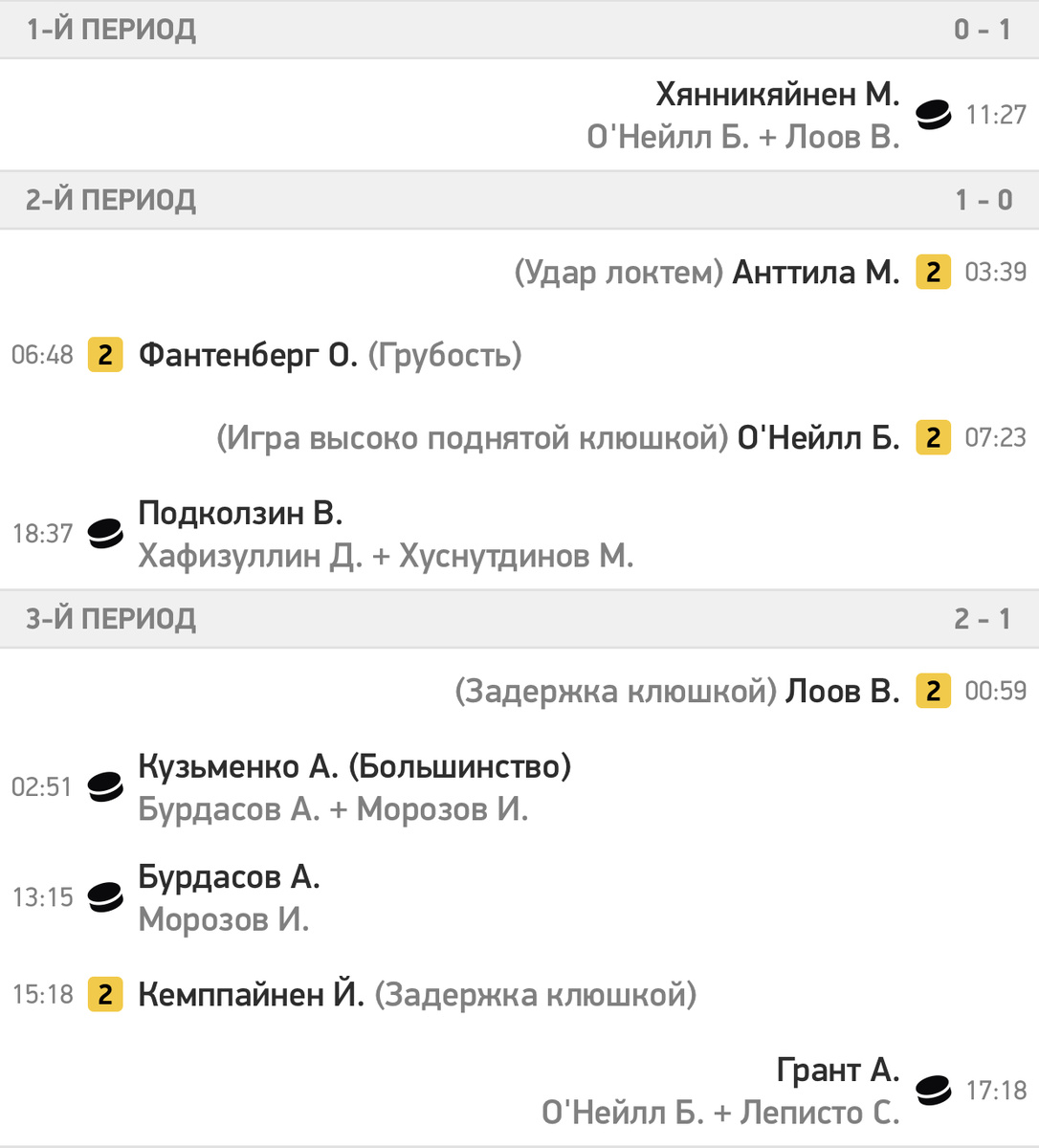 Одним из главных героев встречи стал форвард СКА Антон Бурдасов , который забросил победную шайбу и отдал одну результативную передачу. Два очка также набрал Иван Морозов (0+2). Голкипер