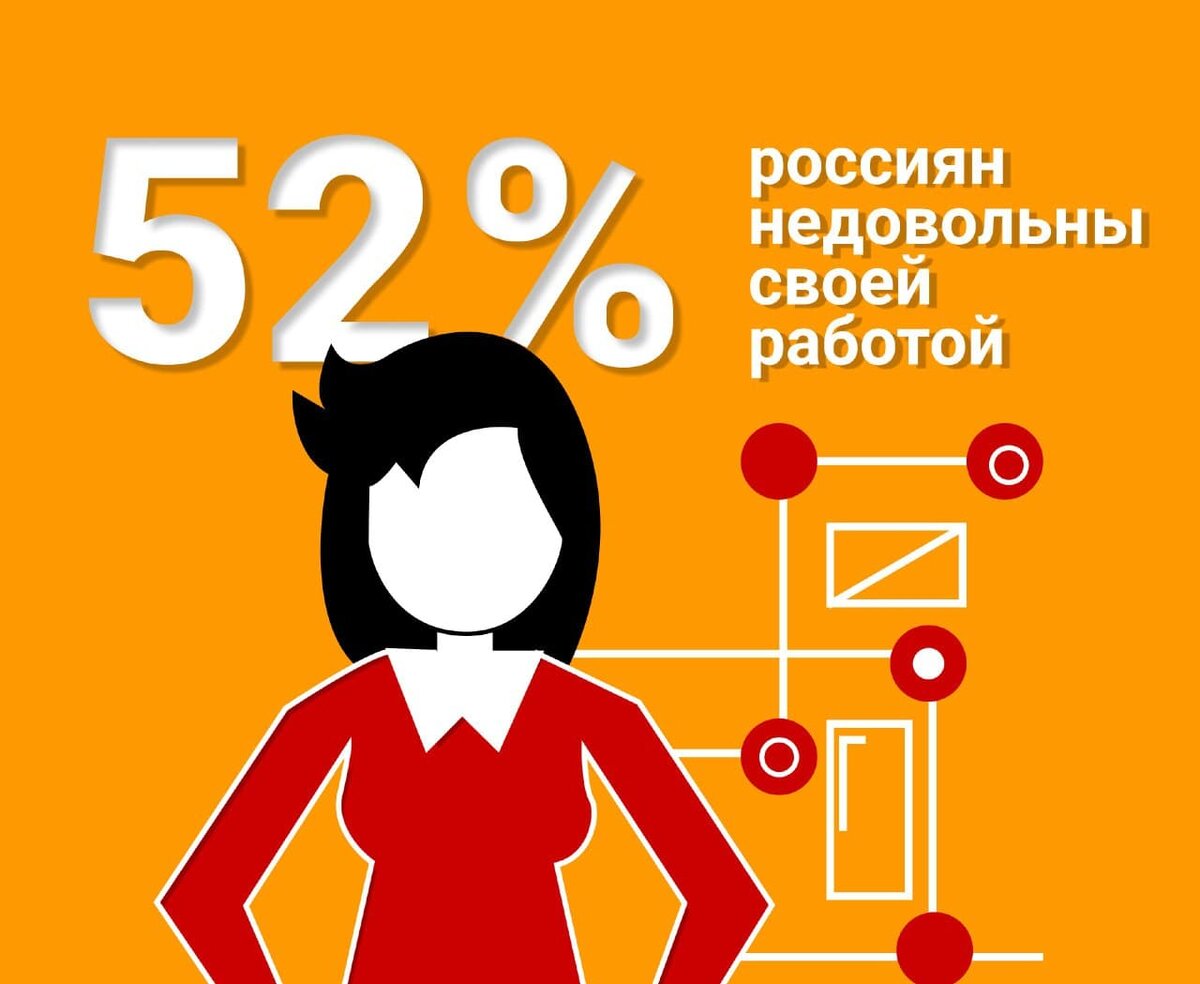 Опрос Центра НАФИ показал, что 52% россиян недовольны работой. Среди причин выделяют задержки зарплаты, переработку, слишком большую нагрузку, маленькую зарплату. Показатель неудовлетворенности остается статичным на протяжении 4–5 лет. В 2016 году он составлял 55%.