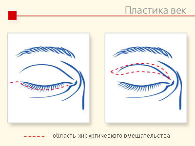 Блефаропластика предполагает разрезы, которые проводятся в естественных складках кожи (верхнее веко), по ресничному краю века (нижнее).