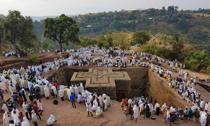 Уникальность местных церквей в том, что они представляют собой монолиты, высеченные из вулканического туфа. Всего здесь 11 церквей, самой примечательной из которых является церковь Святого Георгия. Крыша этой крестовидной церкви находится на уровне земли, а двор церкви представляет собой котлован глубиной 12 метров. В этот двор и далее в саму церковь можно попасть только через прорубленный в скале тоннель.