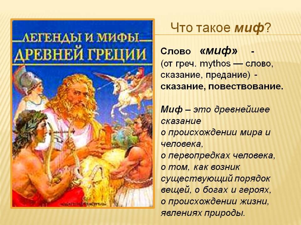 Миф-это древнейшие сказание, о происхождении мира и человека.