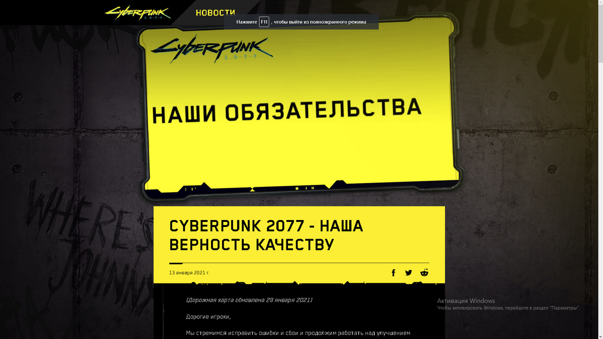 Мы будем использовать эту платформу, чтобы информировать вас о прогрессе, достигнутом в дальнейшей разработке Cyberpunk 2077, включая информацию об обновлениях и