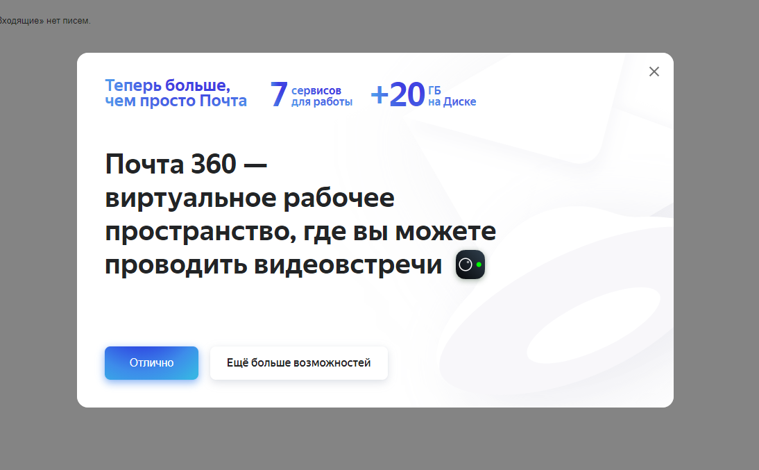 У Яндекса на данный момент проходит акция. При подключении нового оформления Почта 360 вы можете вроде как навсегда бесплатно увеличить объем своего Яндекс.Диска на дополнительные 20 ГБ. Для этого достаточно нажать на кнопку Отлично во всплывшем окне Яндекс.Почты. Оно появляется при регистрации нового аккаунта. Но также таким бонусом можно воспользоваться и на уже имеющемся ящике, перейдя по