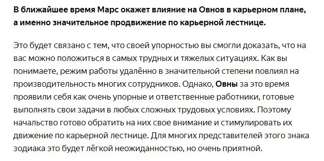 Марс в Овне. Марсианские Овны целеустремленные и не имеют удержу. Они как бульдозер несутся к своим целям, которые намереваются взять нахрапом под влиянием момента. Такой подход оправдывает себя в бизнесе, но никак не в любви.
