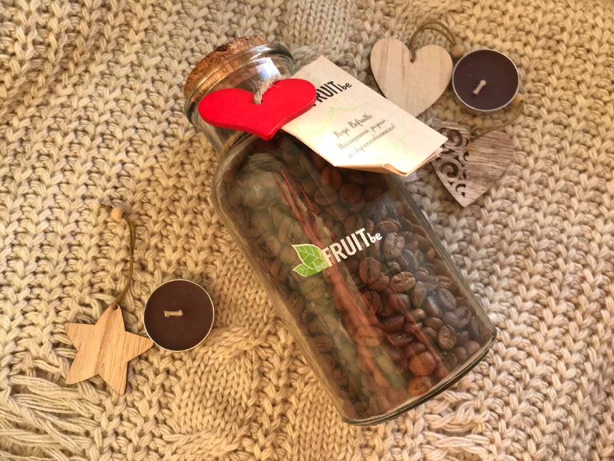 - стеклянная банка с зёрнами, приятным, насыщенным ароматом кофе