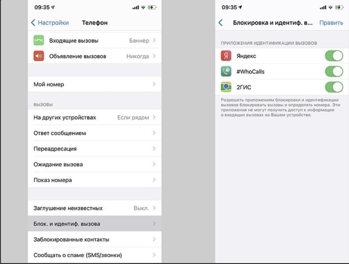 3. Откройте раздел Настройки – Телефон – Блокировка и идентификация вызова и активируйте переключатель для установленного приложения.