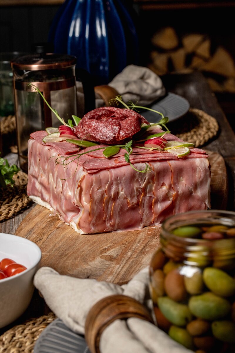 Ломаем систему!!! Вместо домашнего и сладкого, принесите Сэндвичный торт от компании «Скандинавские Мясные и Рыбные торты».