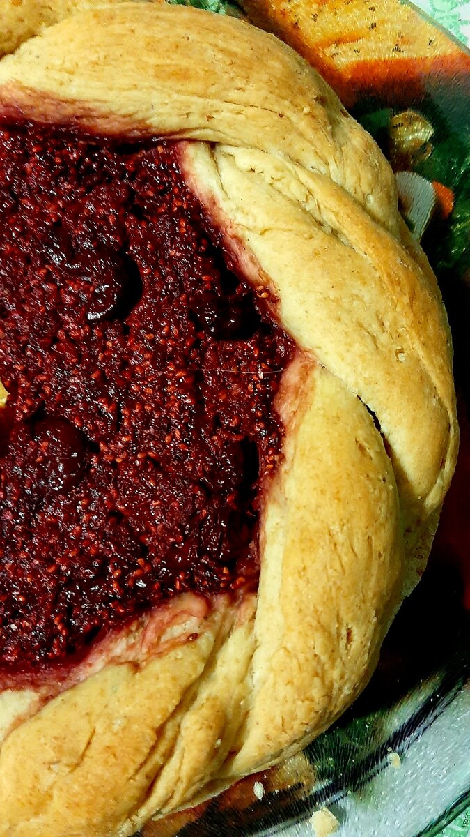 3. Когда тесто "подошло" раскатываем его в размер формы для пирога, красиво делаем бортики. Выкладываем начинку.