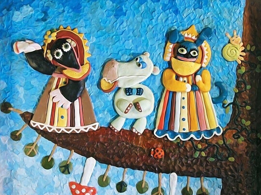 "Пластилиновая ворона" основана на народной сказке. Интерпретация Татарского очень веселая и энергичная. Самое интересное, что история звучит так, будто ее выдумывают на месте: похоже, существует некоторая путаница (или, по крайней мере, некоторая свобода выбора) в отношении личности вороны. Почему это не может быть собака? А почему не корова? Здесь есть хорошее чувство юмора, а постоянное изменение персонажей позволяет аниматору немного повеселиться.