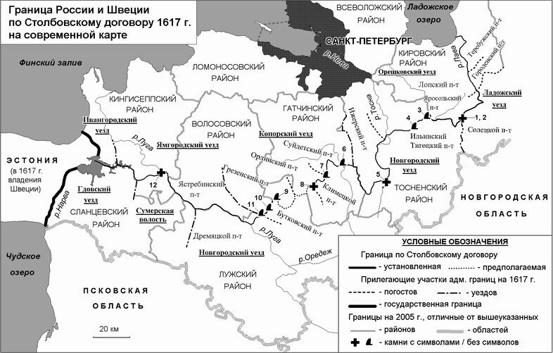 Новая шведско-русская граница, появившаяся четыреста лет назад, в результате Столбовского мирного договора 1617 года, прошла не только по суше, но и по воде. Она разделила Ладожское озеро надвое. Если провести по водной глади воображаемую линию от того места, где в Ладогу впадает река Лава, до деревни Погранкондуши в Карелии, то территории восточнее этой черты остались русскими, а всё, что западнее, отошло к Швеции.