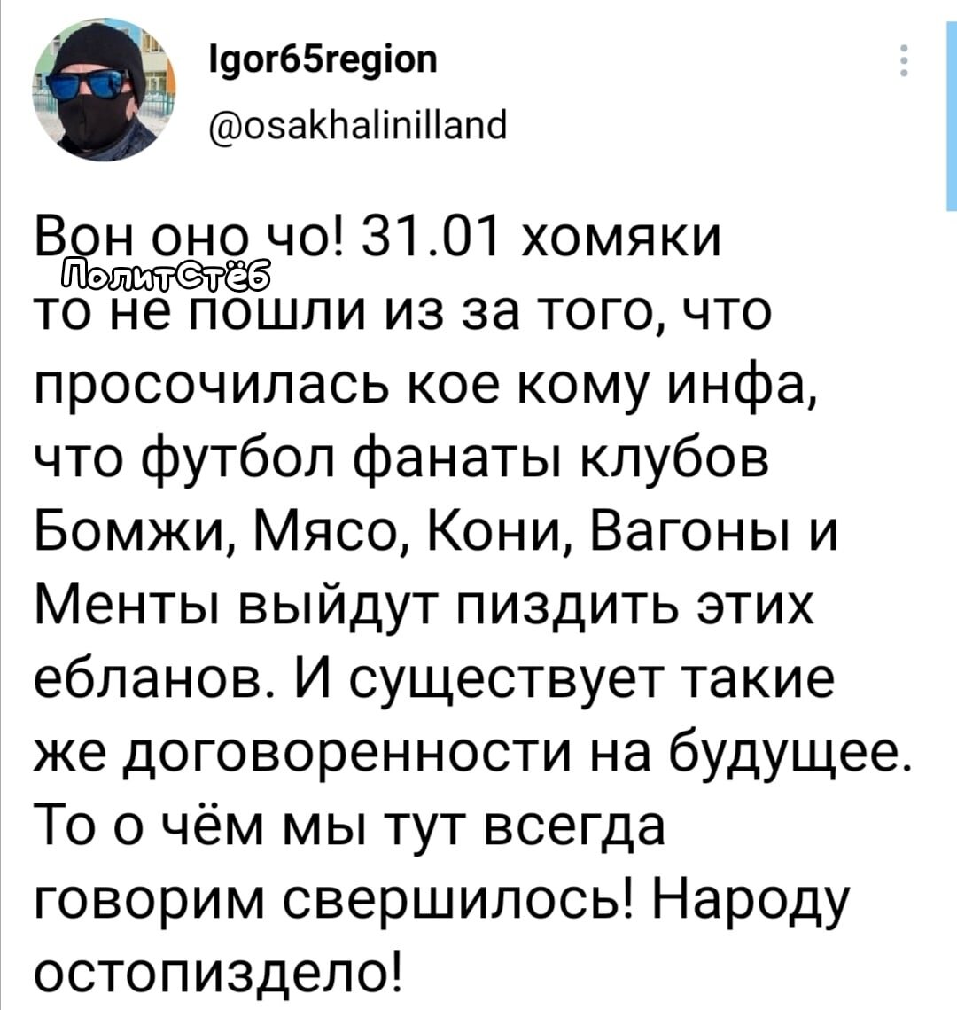Организаторы несогласованных мероприятий ожидали увидеть на улицах футбольных фанатов, скандирующих лозунги, однако те заявили, что фанатское движение находится вне политики. Они не поддались на провокацию и не стали принимать участия в незаконных митингах. Если станет