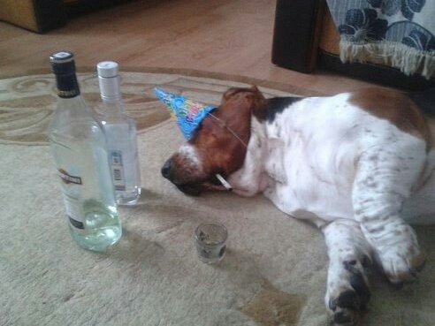 Ночью было весело, хорошо и много алкоголя.... Уже днем меня будят. Жена... с собакой