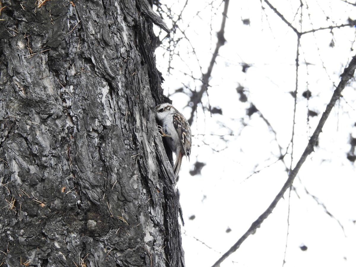 Заметить пищуху проще всего, когда она передвигается по боковой от вас стороне ствола, тогда на фоне снега ее хорошо видно.