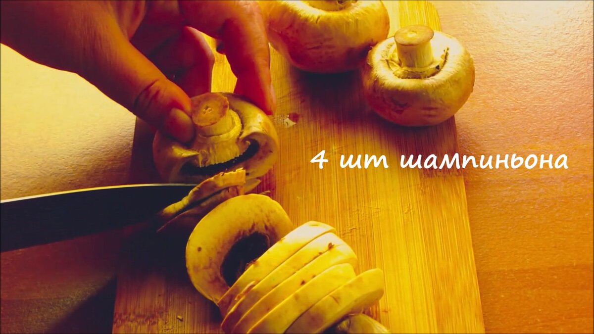 3. Обжариваем лук, добавляем грибы и жарим до готовности грибов