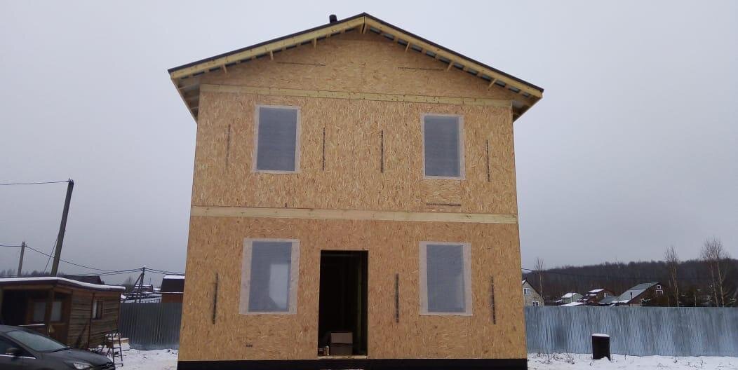 Стройка дачи. Общий вид построенной коробки дома.
