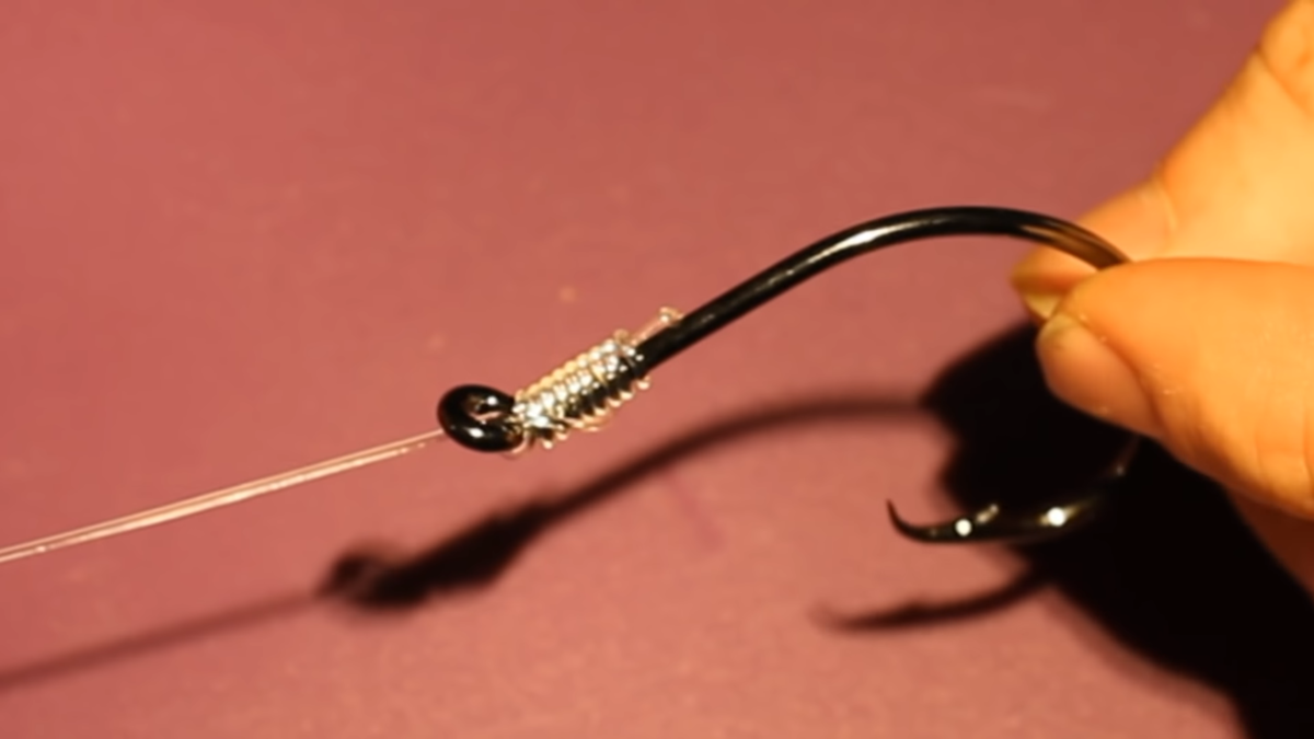 Скруткой из шести оборотов обмотать крючок и хвостик.