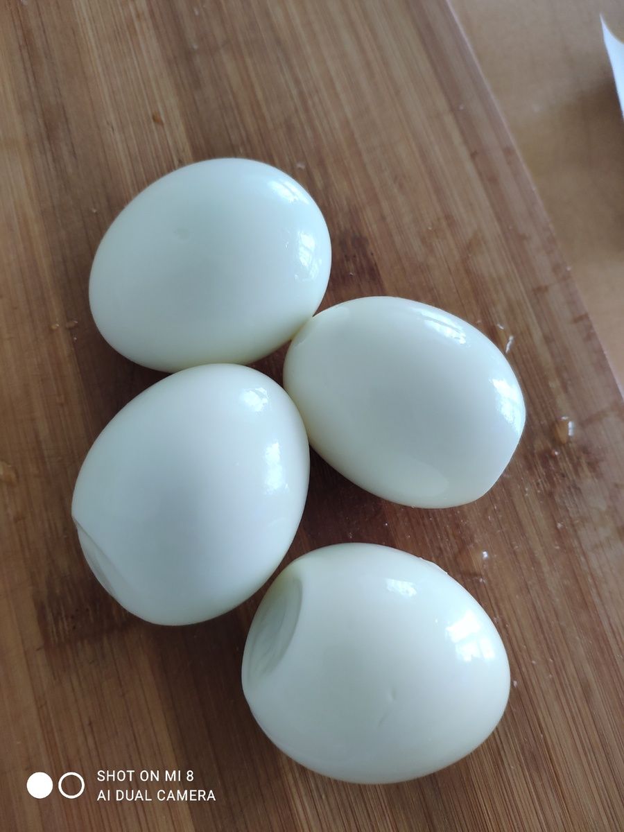 Первым делом ставим отвариваться яйца, после того как отварились- чистим и моем от мелких скорлупок, которые могут неприятно хрустеть
