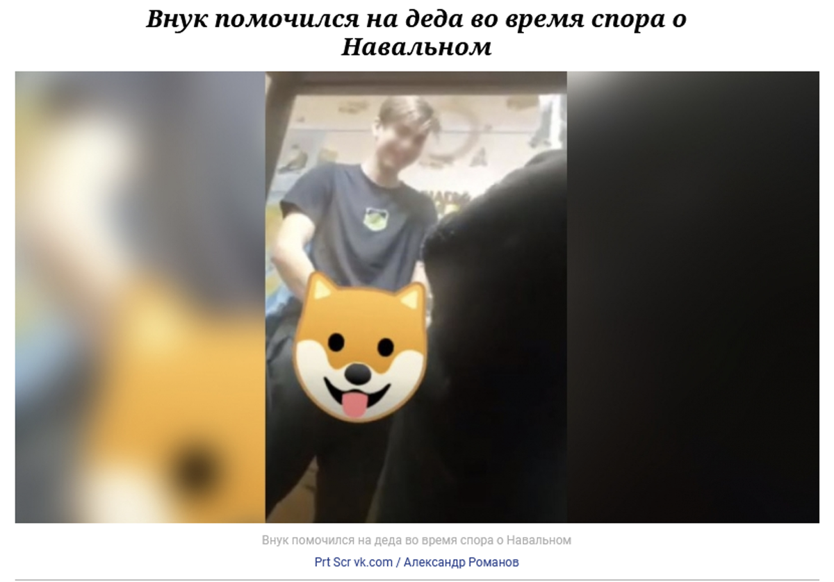 На днях история о том, как 15-летние подростки, наслушавшиеся Навального, оплевали и помочились на 90-летнего дедушку , который пережил войну как раз в их возрасте, получила большой резонанс. Видео распространили сами подростки. Из-за несогласия с мнением пожилого ветерана, подросток сначала оплевал старика, а потом и вовсе помочился на него. Все подростки являются подписчиками Навального. Правоохранители проводят проверку по данному факту.