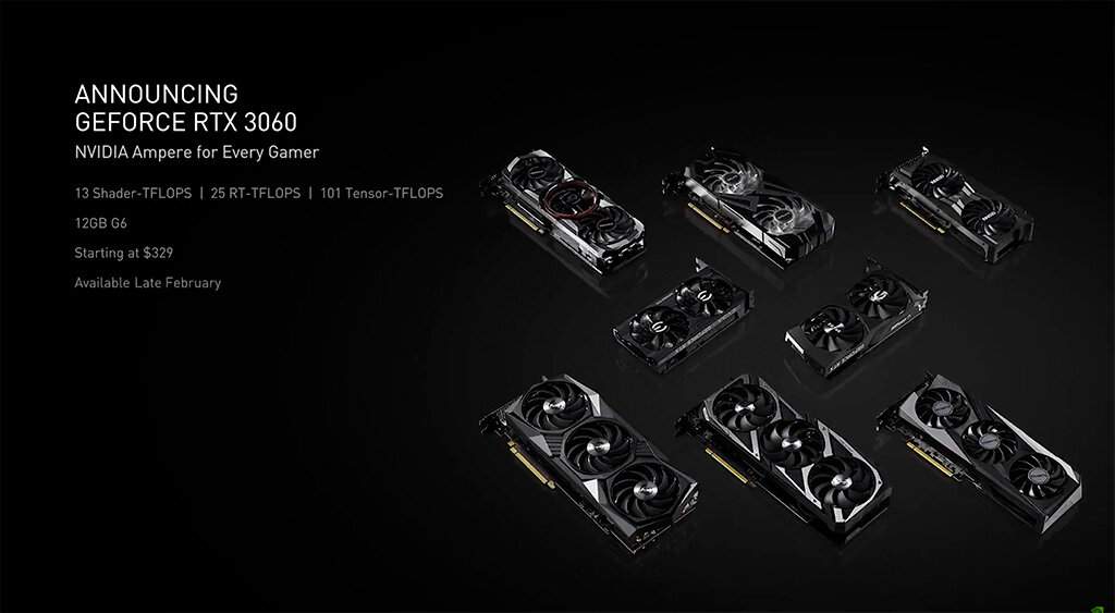 Как сообщает ресурс WCCFtech, ссылаясь на ну очень надёжные собственные источники, продажи NVIDIA GeForce RTX 3060 стартуют 25