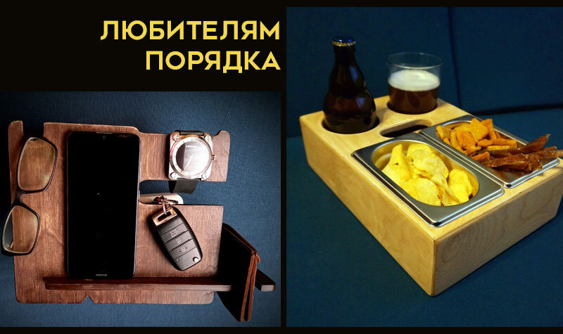 Смотрите, какие удобные органайзеры нашла! Один для личных вещей и смартфона, второй для напитков и закусок. С такими будет порядок и на рабочем столе, и на диване во время просмотра фильма или матча.