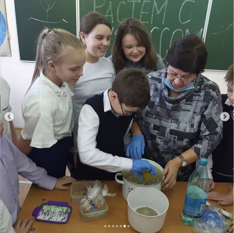 "Учащиеся 5 классов под руководством активиста-ветерана, Скугаревой Валентины Ивановны, проводят стратификацию семен вишни - это первый шаг к созданию фруктового сада в центре нашего любимого района Кедровка".