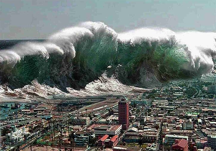 - поражение людей и разрушение сооружений волной прорыва, образующейся в результате разрушения гидротехнического сооружения, имеющей высоту от 2 до 12 м и скорость движения от 3 до 25 км/ч (для горных районов – до 100 км/ч);