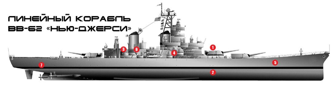Вспомним, что линкор ВВ-62 "Нью-Джерси" вошел в строй американского флота 23 мая 1943 года, а окончательно флот распрощался с «Нью-Джерси» 18 октября 1998 года. Сейчас "Нью-Джерси» с 15 октября 2001 года как корабль-музей открыт для посетителей в городе Кэмден, Нью-Джерси.