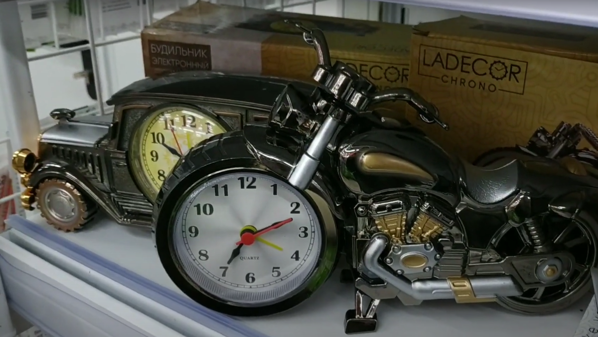Интересная форма часов для любителей ретро. Материал - пластик, часы работают на одной АА батарейке.