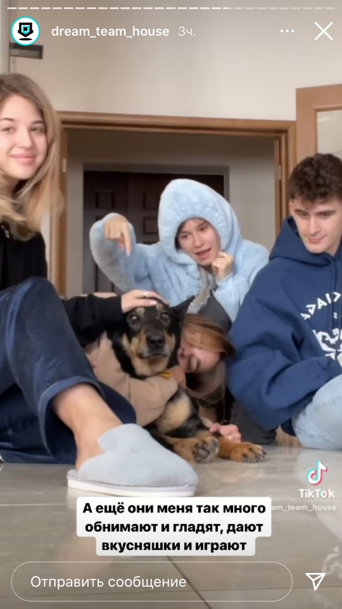 В Дрим Тим взяли в свою команду нового участника, собаку из приюта по кличке Батон. "Мы долго хотели взять собаку и осознанно взяли не щенка, а взрослую собаку, у которой уже мало шансов выбраться из приюта" рассказала Маха.