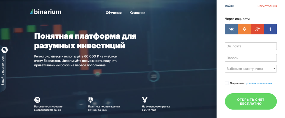 Торговая платформа Бинарных Опционов Binarium предоставляет профессиональные услуги начиная с 2012 года. Накопленный за время работы опыт позволил компании снабдить трейдеров с различных уголков мира всем необходимым для комфортной торговли.