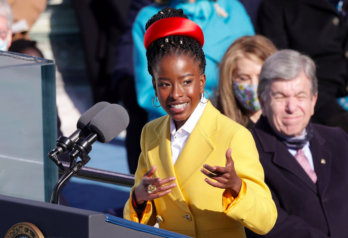Последний яркий пример аутфита с ободком, который привлек внимание всего мира - выход поэтессы Аманды Горман в день инаугурации президента США Джо Байдена. Округлый, высокий, но, прежде всего, ярко-красный ободок бренда Prada, как и весь наряд девушки в тот день. Эту модель бренд выпустил еще в коллекции Весна-Лето 2019.