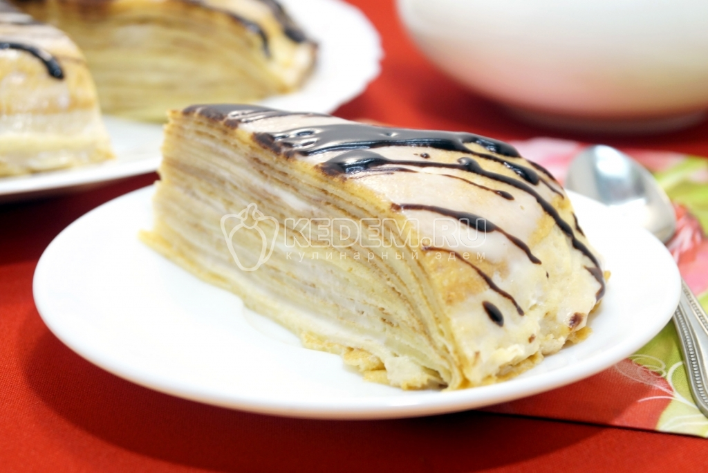 Наш вкусный блинный торт со сгущенкой готов. Можно подавать к столу.