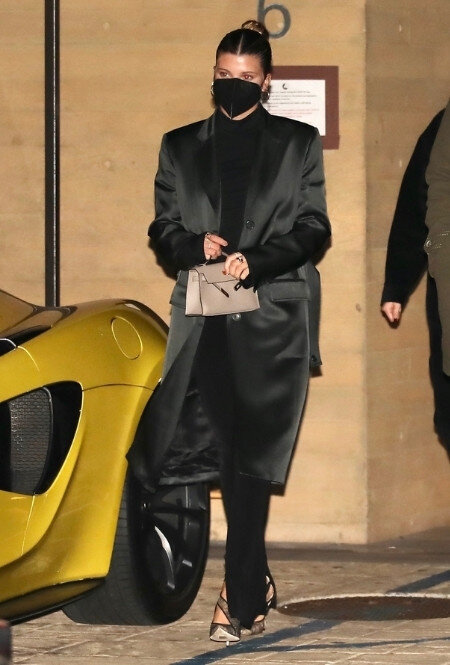 Total-black открывает безграничное количество возможностей для фэшн-экспериментов. Первая модница Малибу София Ричи подсказывает оригинальное решение, которое пригодится для составления эффектного вечернего лука. Для ужина в любимом ресторане Nobu девушка выбирает женственный брючный образ в тотальном черном, дополняя его атласным пальто и туфлями-лодочками. Знаменитость завершает аутфит