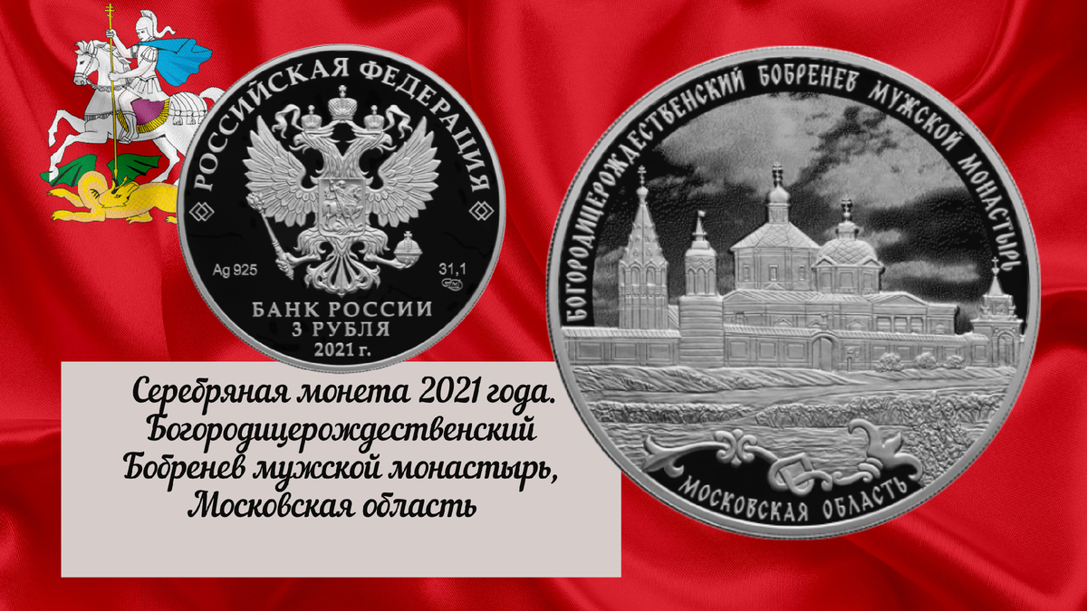 2 февраля 2021 года Банк России выпустил в обращение серебряную памятную монету номиналом 3 рубля. Монета посвящена Богородицерождественскому Бобреневу мужскому монастырю в Московской области, входит в серию "Памятники архитектуры России". Тираж данной монеты - 3 000 экземпляров.