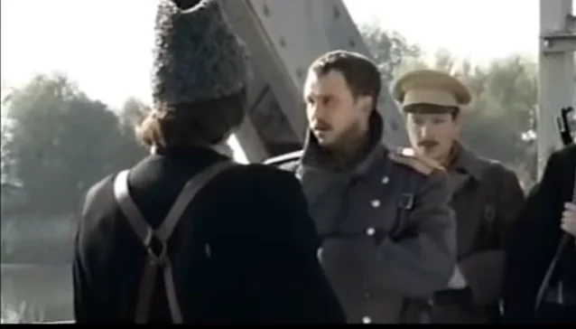 Кто-то сорвал погоны и ушел. Кто-то отправился "купаться". Дальше на мосту показался один из ключевых персонажей фильма пан Данилевский. Офицер Императорской армии. Он тоже не снял погоны и тоже отправился купаться.