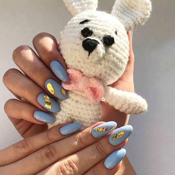 Тренд нового сезона в виде модного маникюра слезы единорога прекрасен в разных стилях, среди которых окажется матовый дизайн. Именно такой маникюр в данной технике отлично впишется в повседневный аутфит. Приятный матовый маникюр слезы единорога можно сделать с серебристыми капельками, что смотрятся просто суперски красиво и деликатно на коротких матовых ногтях.