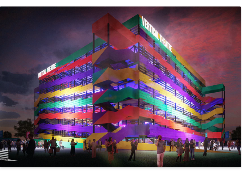 Театр - это новый вид перформанс-пространства, который, по словам его создателей, можно использовать для всех типов живых мероприятий, включая театр, фестивали, мировые гастроли артистов, комедии, цирка и телетрансляции. Это отдельно стоящая структура с крышей для защиты публики и сцены от непогоды, а также дополнительные открытые стороны, обеспечивающие оптимальный воздушный поток и естественную