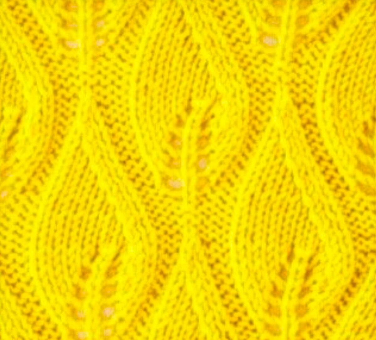 Листья сформированы лицевыми и изнаночными петлями. Хорошо будет смотреться на светлой пряже.