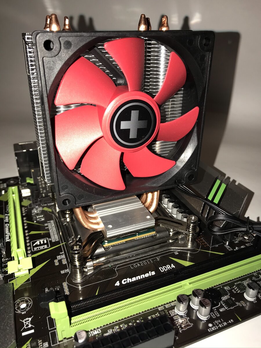Сначала мне приехала материнская плата вместе с процессором, охлаждение должно было придти только через 2 недели, поэтому было принято решение на время поставить другой куллер. Ставлю всё на свои места и получаю следующее