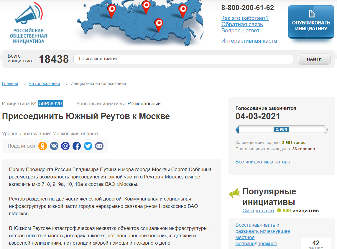 Проведение голосования по поводу «Присоединения южной части города Реутов к городу Москве»