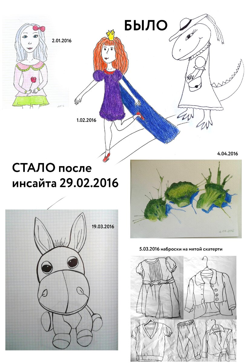 На картинке я хотела показать разницу между было и стало. Это был мгновенный инсайт, поэтому разница так заметна и рядом во времени.