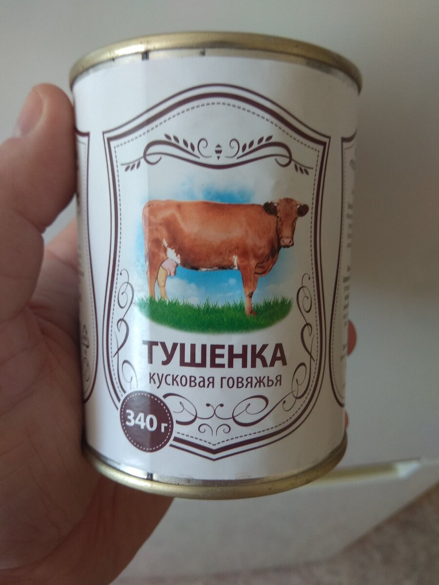 Всем привет! Совершая променад по "Пятерочке", на полке с консервами я увидел эту тушенку и цена ,конечно, говорила сама за себя, но я все же решился взять баночку. Напомню ,что у меня на канале уже есть обзор на подобную тушенку из "Магнита" ,когда дочитаете эту статью, можете перейти и прочитать предыдущий материал. Заранее спасибо. Ну а сейчас вернемся к герою данной статьи-встречайте "Тушенка