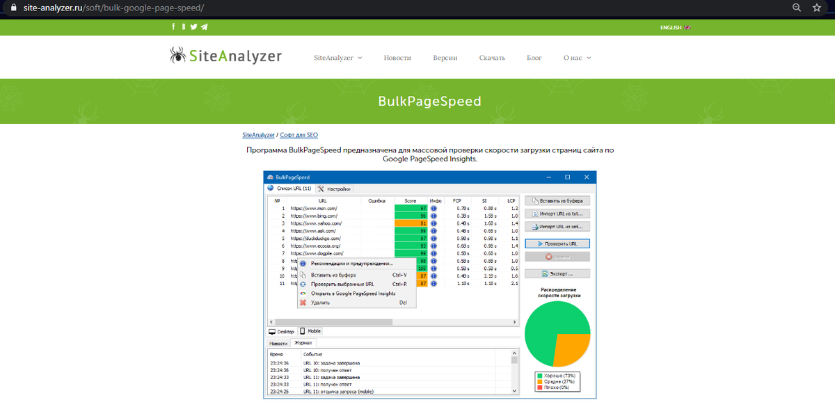 Периодически бывает необходимо проверить скорость загрузки страниц вашего сайта или проанализировать скорость сайтов конкурентов. Для этого используются различные сервисы и программы, одной из которых является BulkPageSpeed. Это бесплатная программа от создателей проекта SiteAnalyzer, и в данной статье мы рассмотрим, как в ней работать, чтобы проанализировать скорость загрузки страниц сайта.