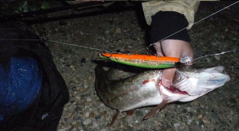 Теперь о рыбалке. В 4:00 еще темно, но рып уже не спит, не заметив всплесков, решил поставить подповерхностный воблер, ну и как вы уже наверное догадались,выбор пал на "Валеру", через 10 или более забросов попался первый щукинс, я забыл затянуть фрикцион, поэтому борьба затянулась, он начал так нервно жужжать на рывках некрупного шнурка, что даже не хотелось его затягивать, минута борьбы и рып уже на берегу.