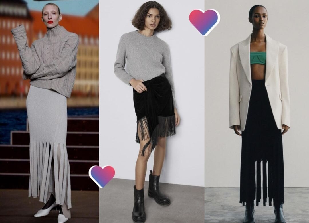 Вещи с отделкой в виде бахромы все больше захватывают тренды. В частности, уже сейчас в коллекциях можно встретить и юбки с таким декором. Интересный вариант, если вам нужна акцентная вещь с характером. Преимущество такой юбки в том, что она отлично вытягивает силуэт, т.к. создает множество дополнительных вертикальных линий.