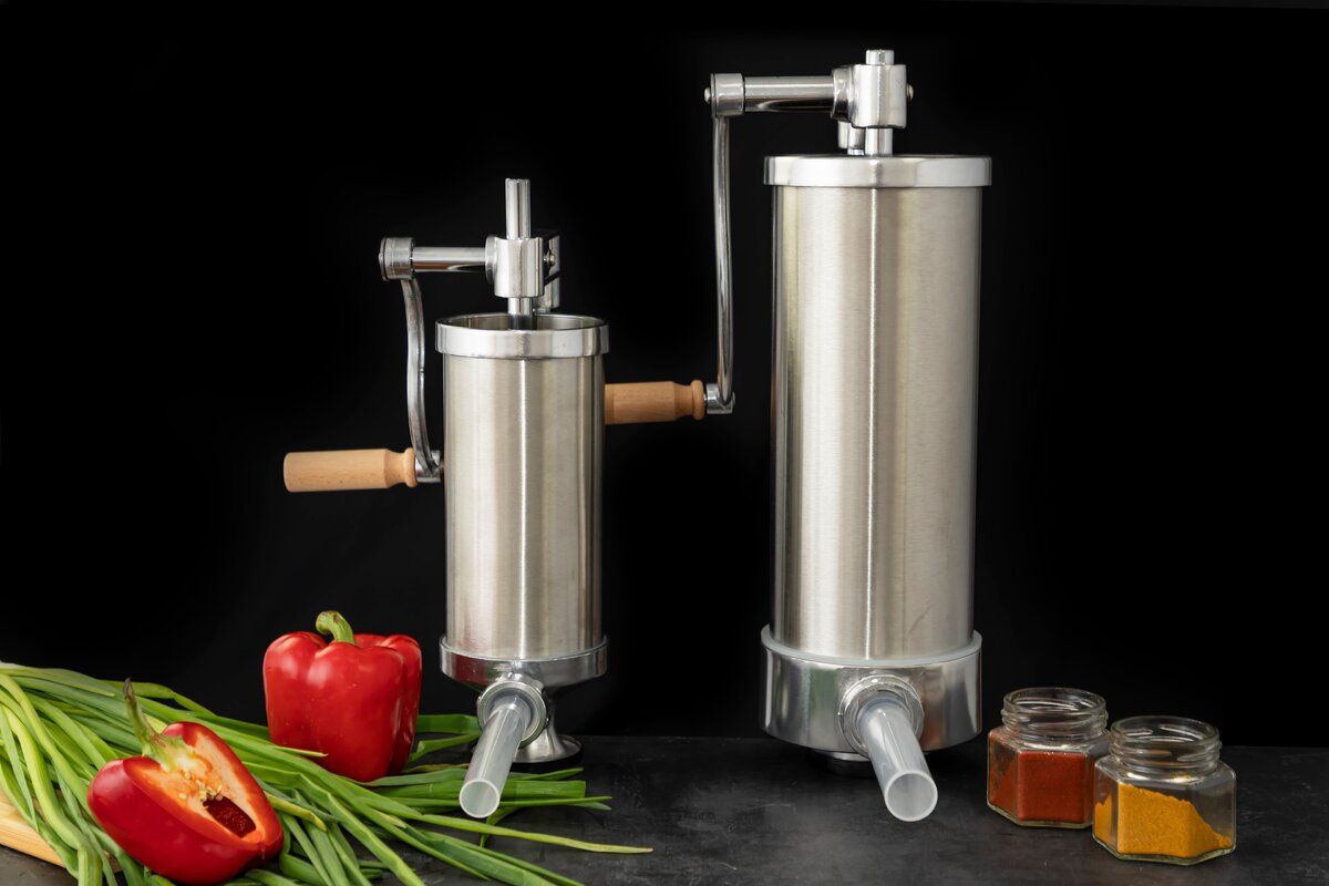 Линейка колбасных шприцев от компании «Добрый Жар» включает в себя вертикальные и горизонтальные шприцы разных объемов. Большие горизонтальные шприцы подойдут большим семьям – деликатеса хватит всем. А для вертикального шприца найдется место даже на самой маленькой кухне.